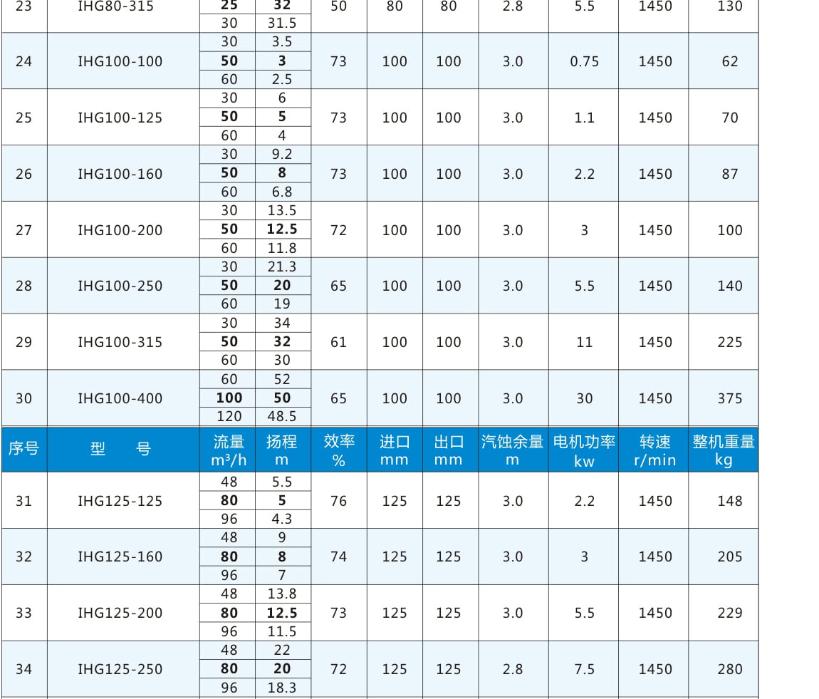 IHG:卧式不锈钢管道泵代号丨 80:进出口直径80mm 丨 160:叶轮名义直径160mm