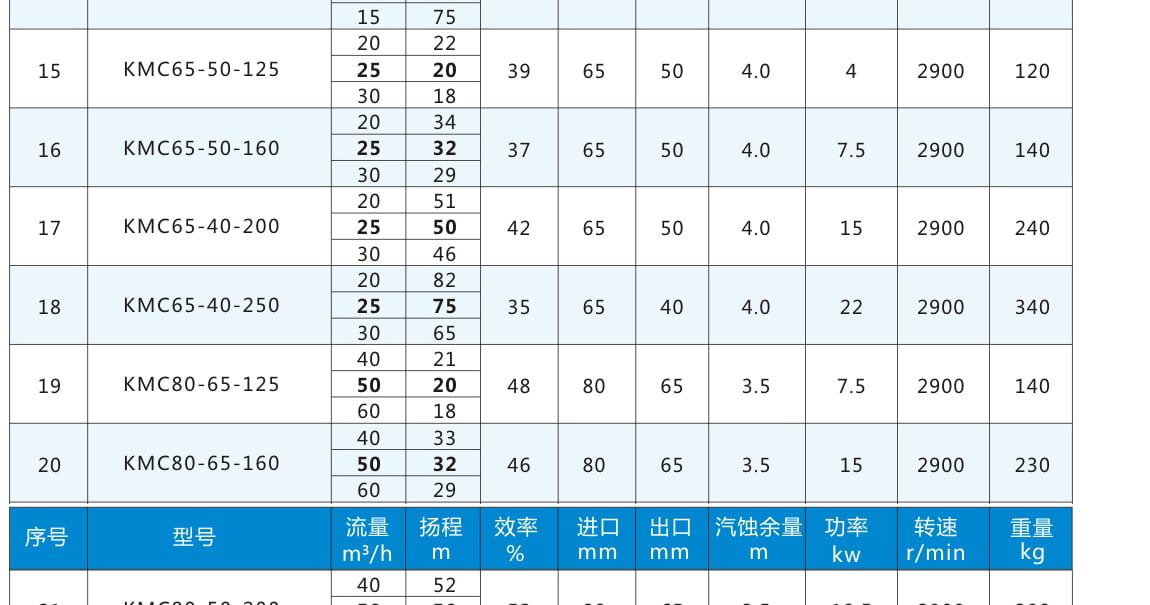 KMC:重型不锈钢磁力泵代号丨 80:进口直径80mm 丨65:出口直径65mm 丨160:叶轮名义直径160mm