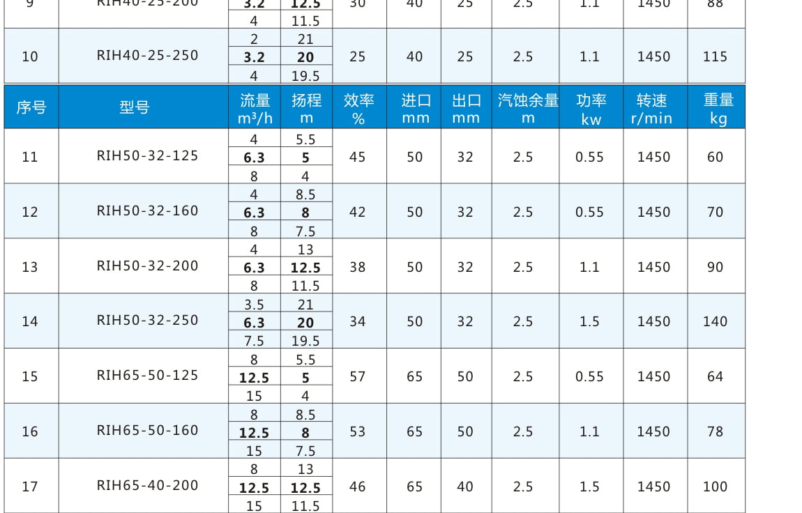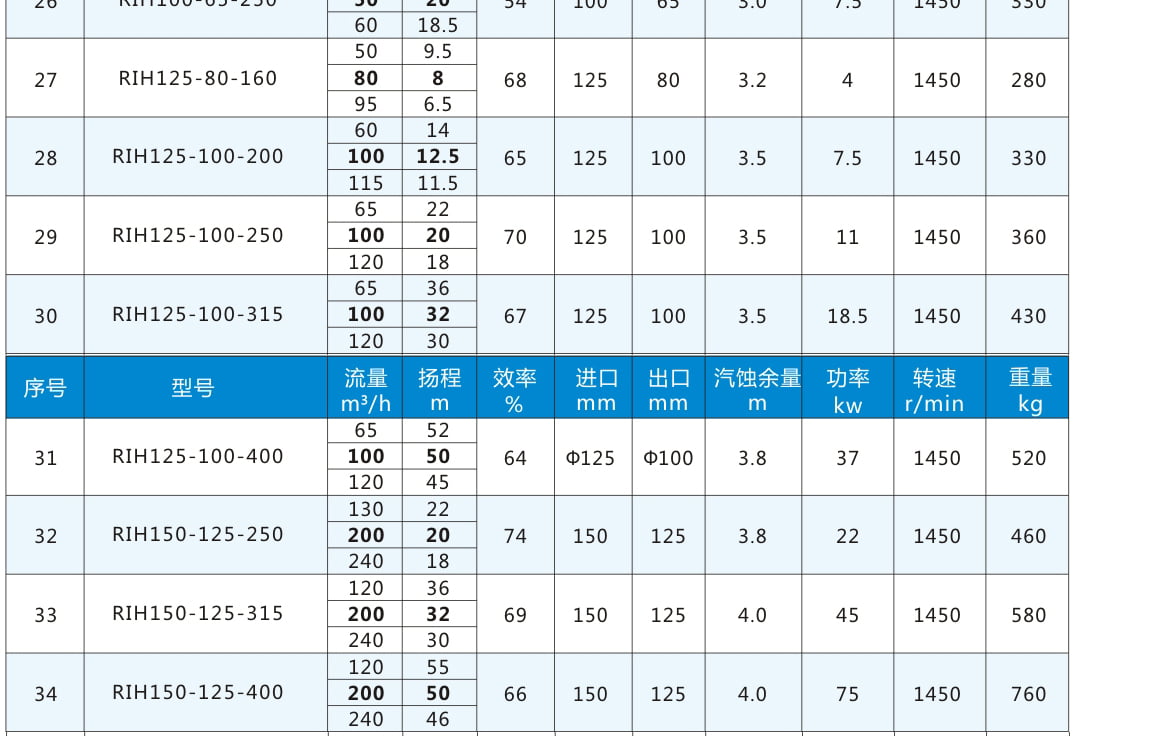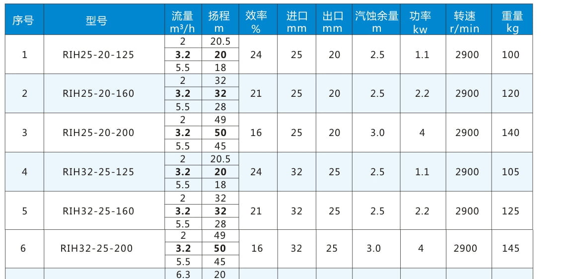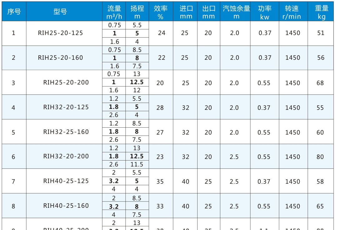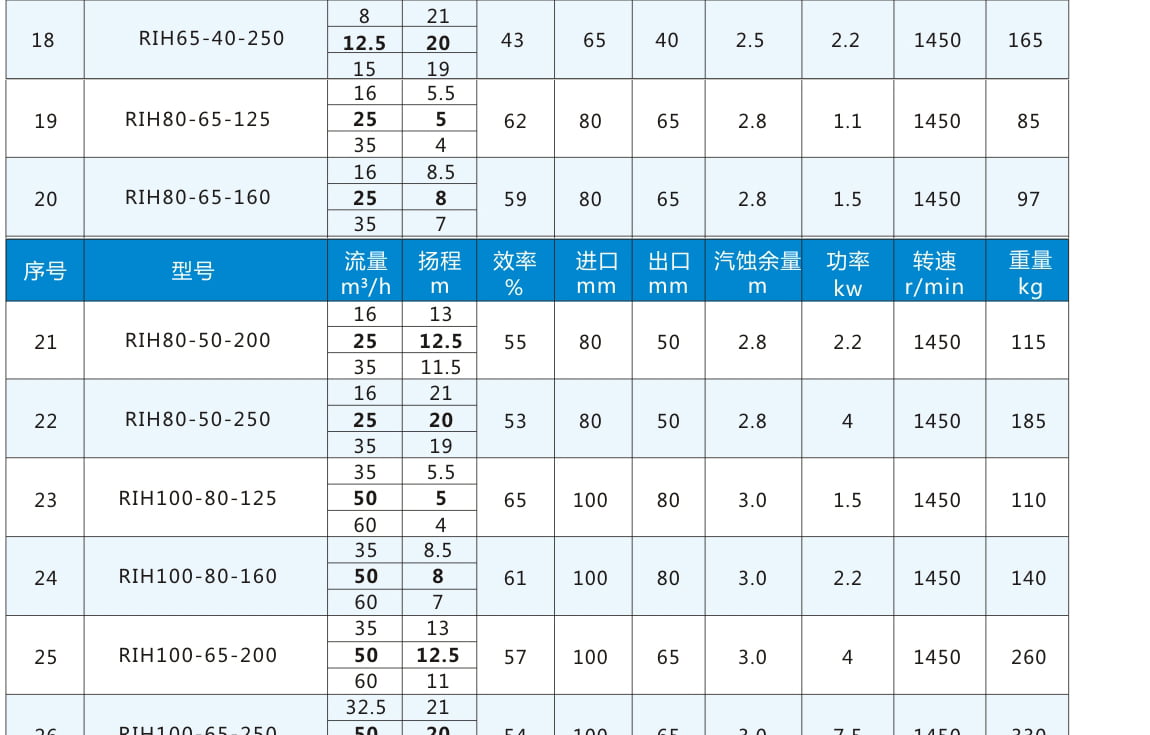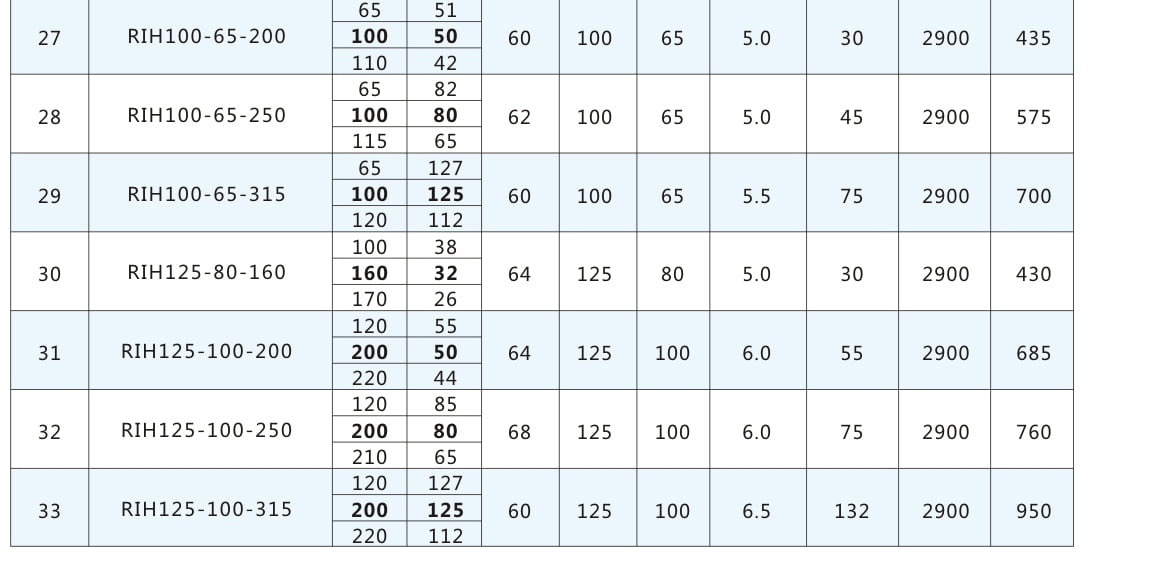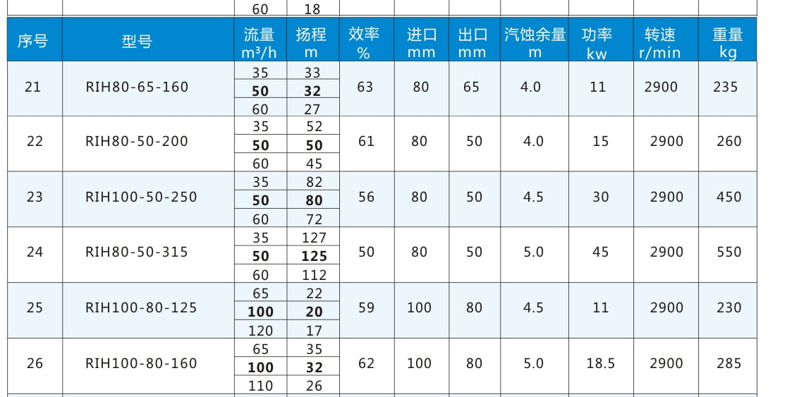 RIH:不锈钢离心泵代号丨 80:进口直径80mm 丨65:出口直径65mm 丨160:叶轮名义直径160mm